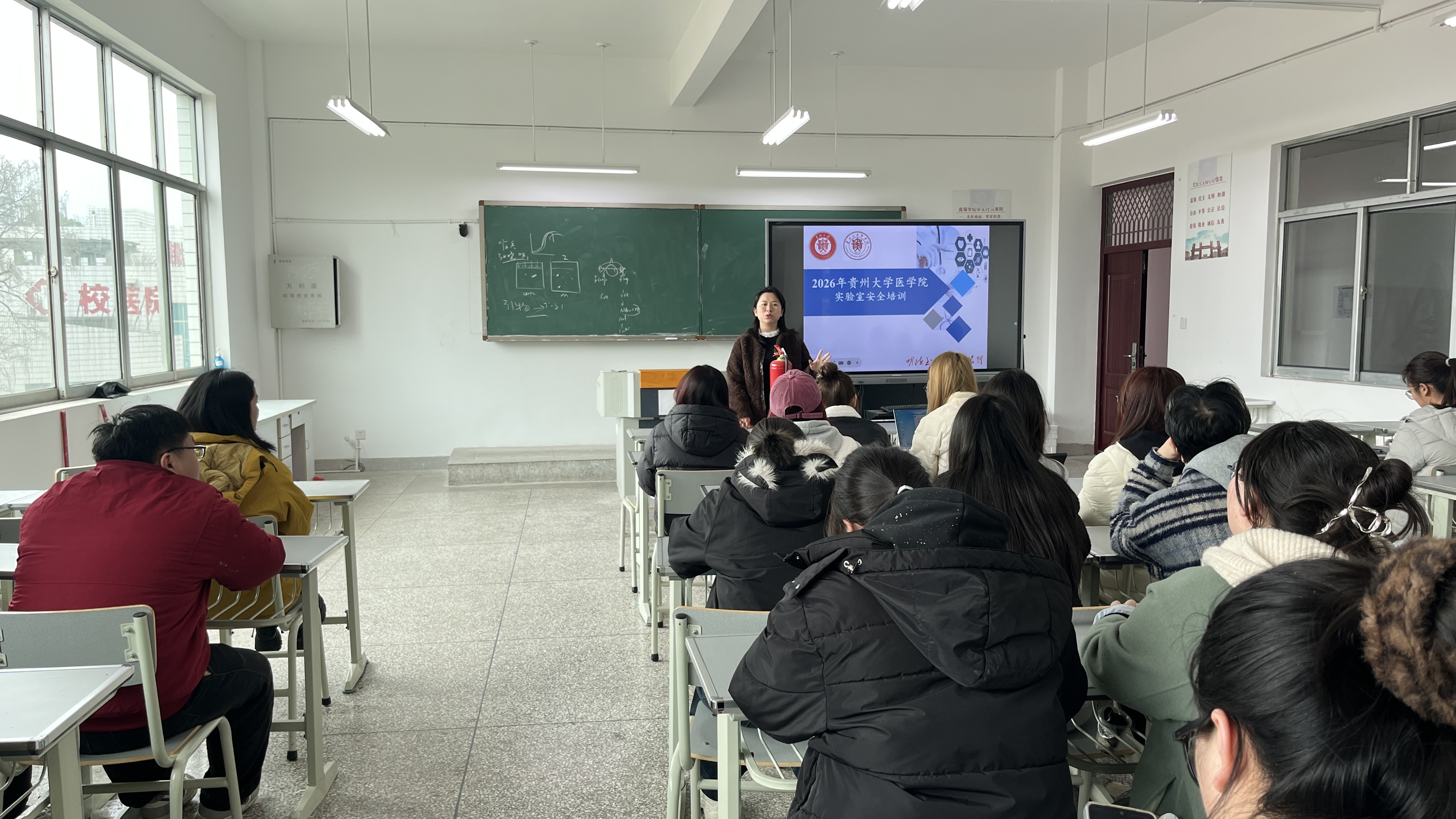 为贯彻落实2026年全省教育工作会议精神及学校关于开学实验室安全工作的部署要求,切实保障新学期实验室安全稳定运行,提升师生实验安全意识和应急防护能力,贵州大学医学院于2026年2月27日组织开展春季学期开学实验室安全专项检查,并于3月3日举办实验室安全培训。此次活动由曹颖副院长带队,实验教学中心管理人员及各实验室安全责任教师共同参与,全体在院开展实验工作的教师及学生参加培训。