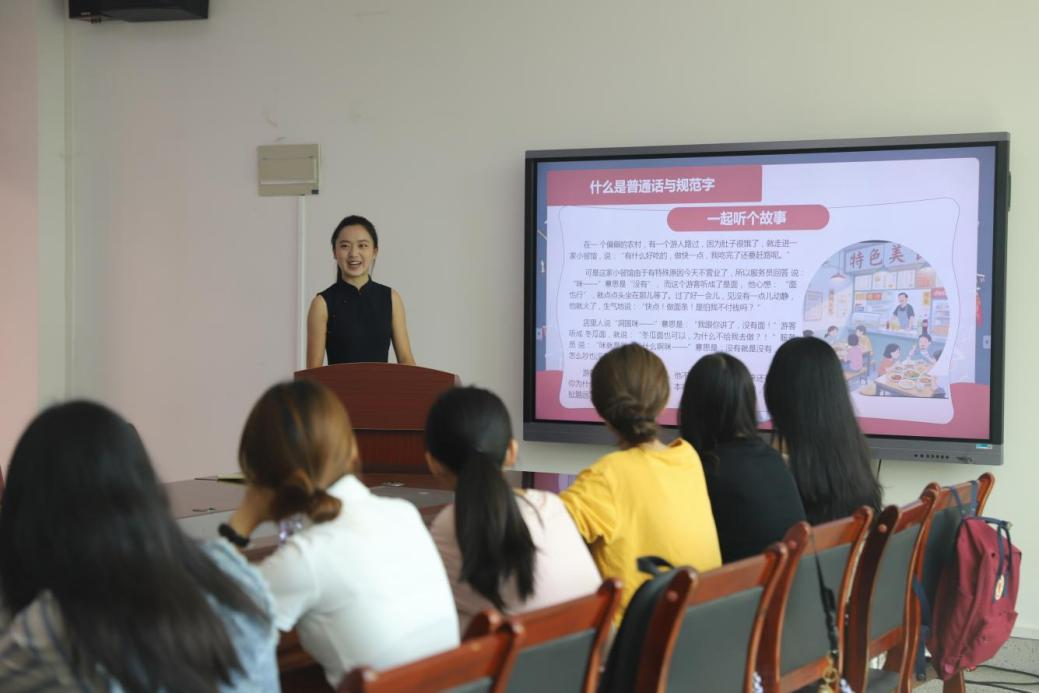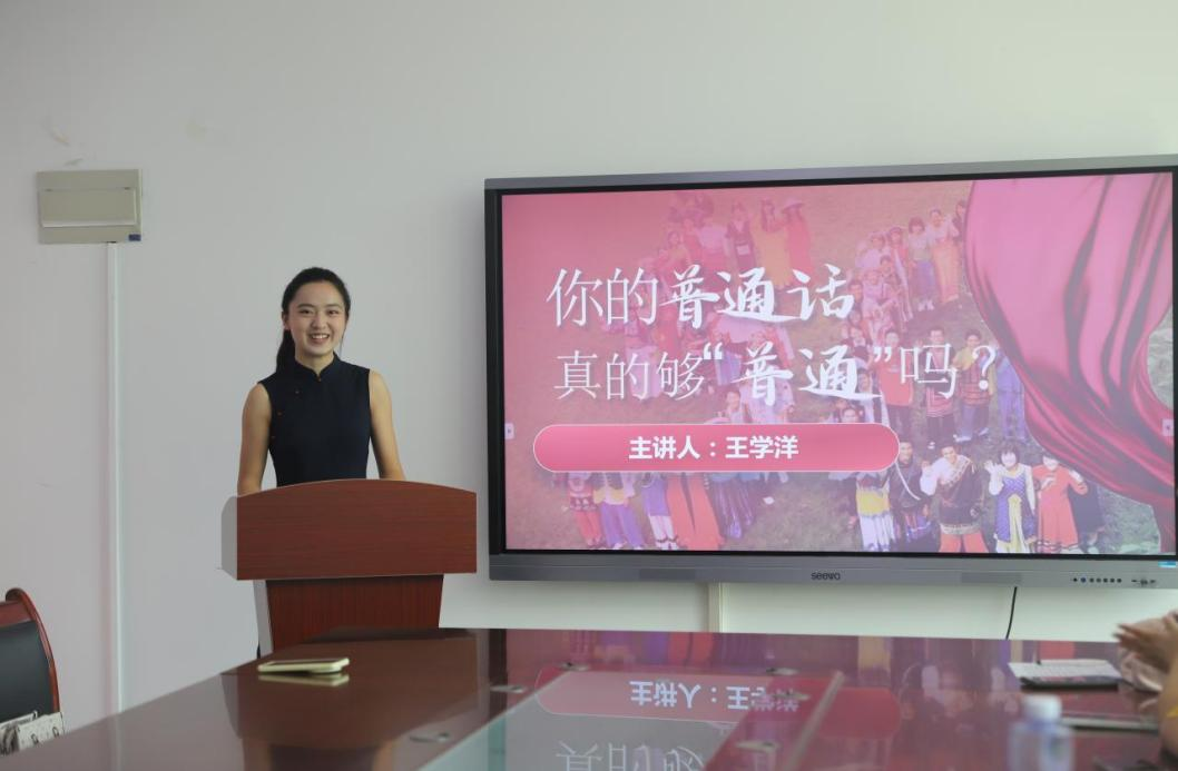 讲座伊始,王学洋以生动幽默的小故事结合历史背景,深入浅出地阐释了普通话与规范字的定义,为同学们搭建起对普通话的基础认知框架。在学好普通话的重要性板块之中,她通过轻松诙谐的视频展示出不会普通话所带来的生活不便,引发听众共鸣;又以彝族小孩志愿成为主持人这一打动人心的故事为例,展现学会普通话对个人及家庭发展的助力;同时从政治、经济、文化、科技四个维度,清晰阐明推广普通话的深层原因,让大家充分认识到学好普通话的必要性。