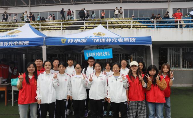 除了在赛场上拼搏的运动员,一抹独特的“志愿红”也成为本届运动会不可或缺的温暖力量。由医学院学生组成的“医学院医护急救先锋队”队员们穿梭于赛场的各个角落。他们负责学院运动员的赛事引导、赛后帮护等工作。他们用实际行动诠释我们“奉献、友爱、互助、进步”的志愿精神,彰显出未来医务工作者的责任与担当。